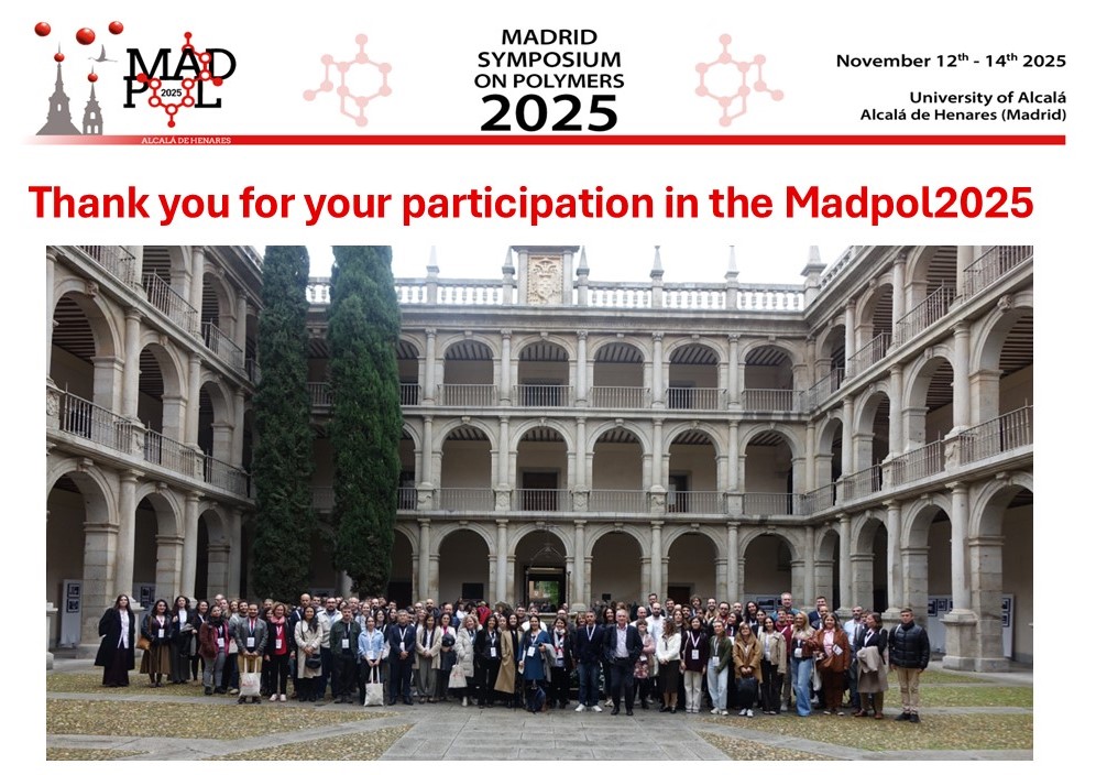 The MADPOL2025 Organizing Committee welcomes you to the first Madrid Symposium on Polymers that will be held in Alcalá de Henares, Spain, in November 12th-14th, 2025. In this meeting we will celebrate the full diversity of modern polymer science research and its strong technological projection.